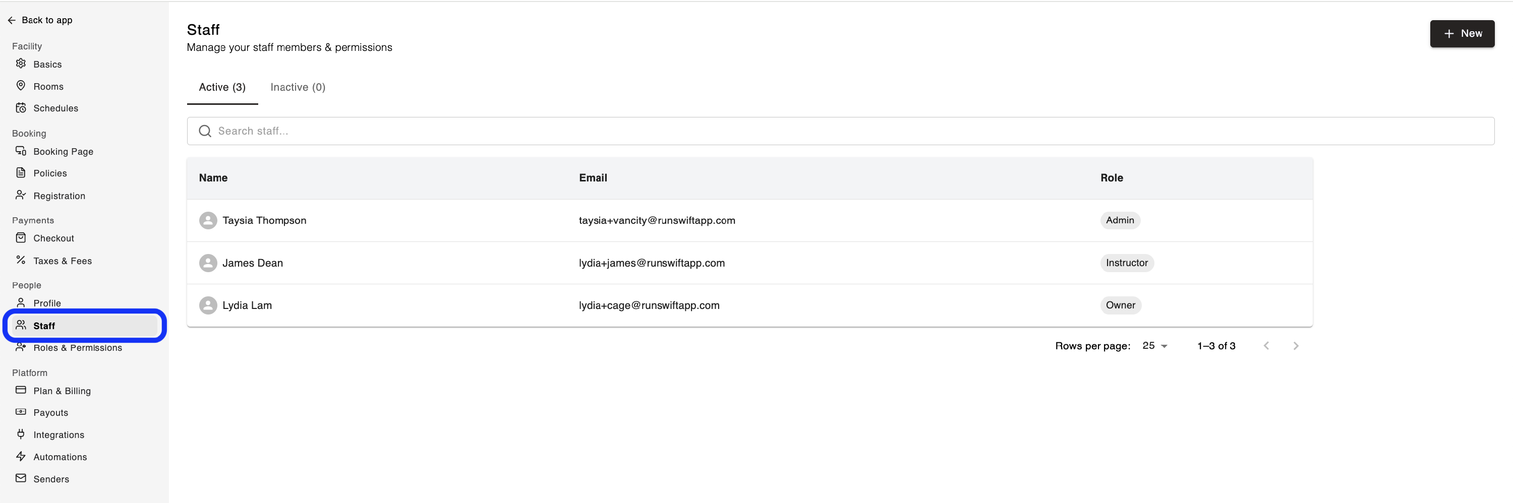 Learn more about this on the Staff page. It also includes information on setting their roles & permissions, which will control the level of access they have in Swift.