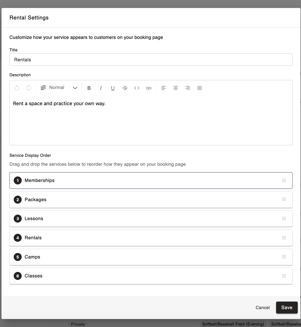 Adding a facility description to your booking page can improve the overall experience for your customers and make the booking process smoother for both staff and clients. To add and/or update your facility description,