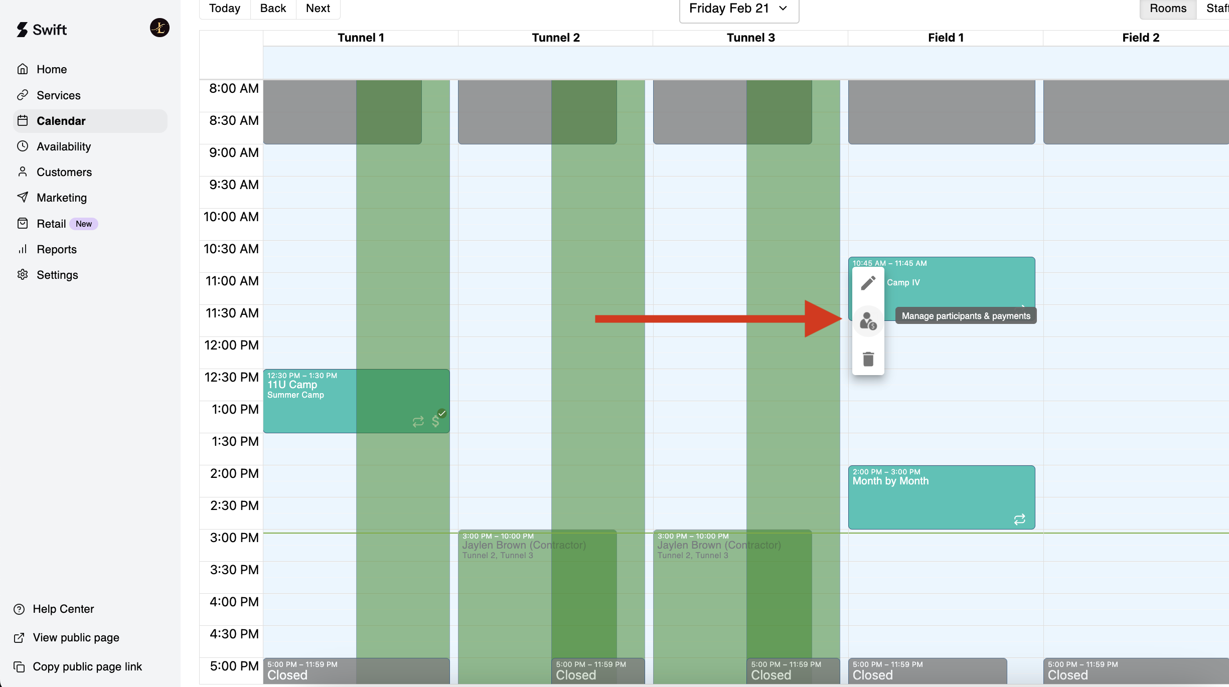 - Next to the customer's name of whom you are trying to remove, select the Manage Bookings and Payments (calendar) icon
