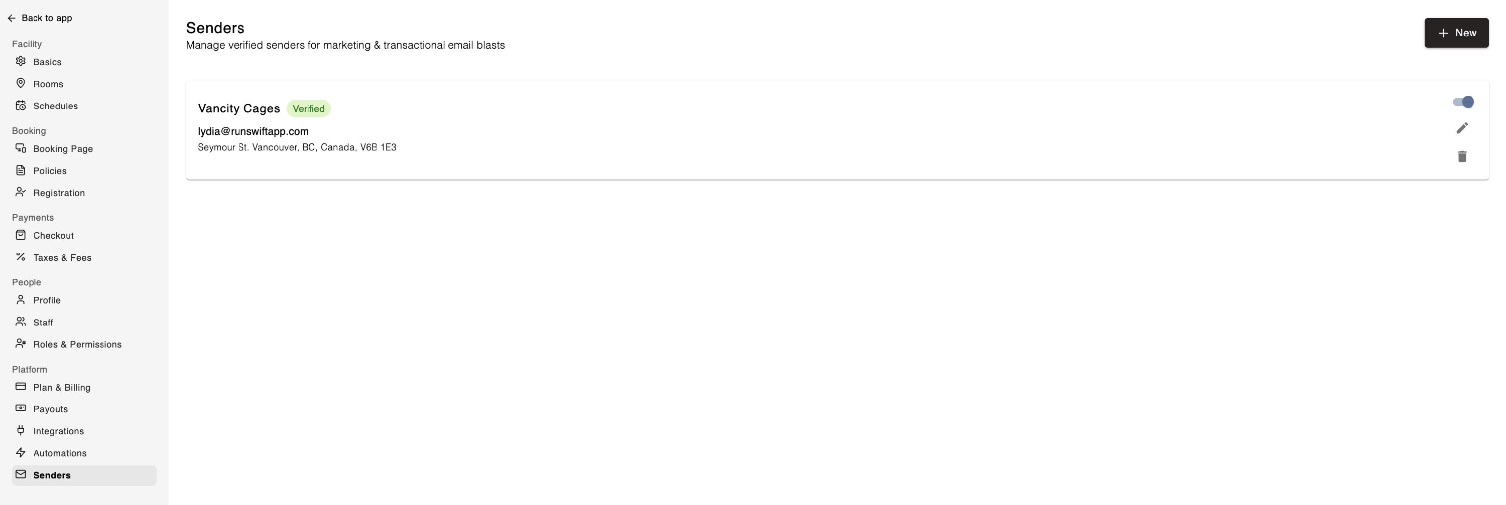 - Once your Sender has been verified, go back to Settings > Senders in Swift Admin