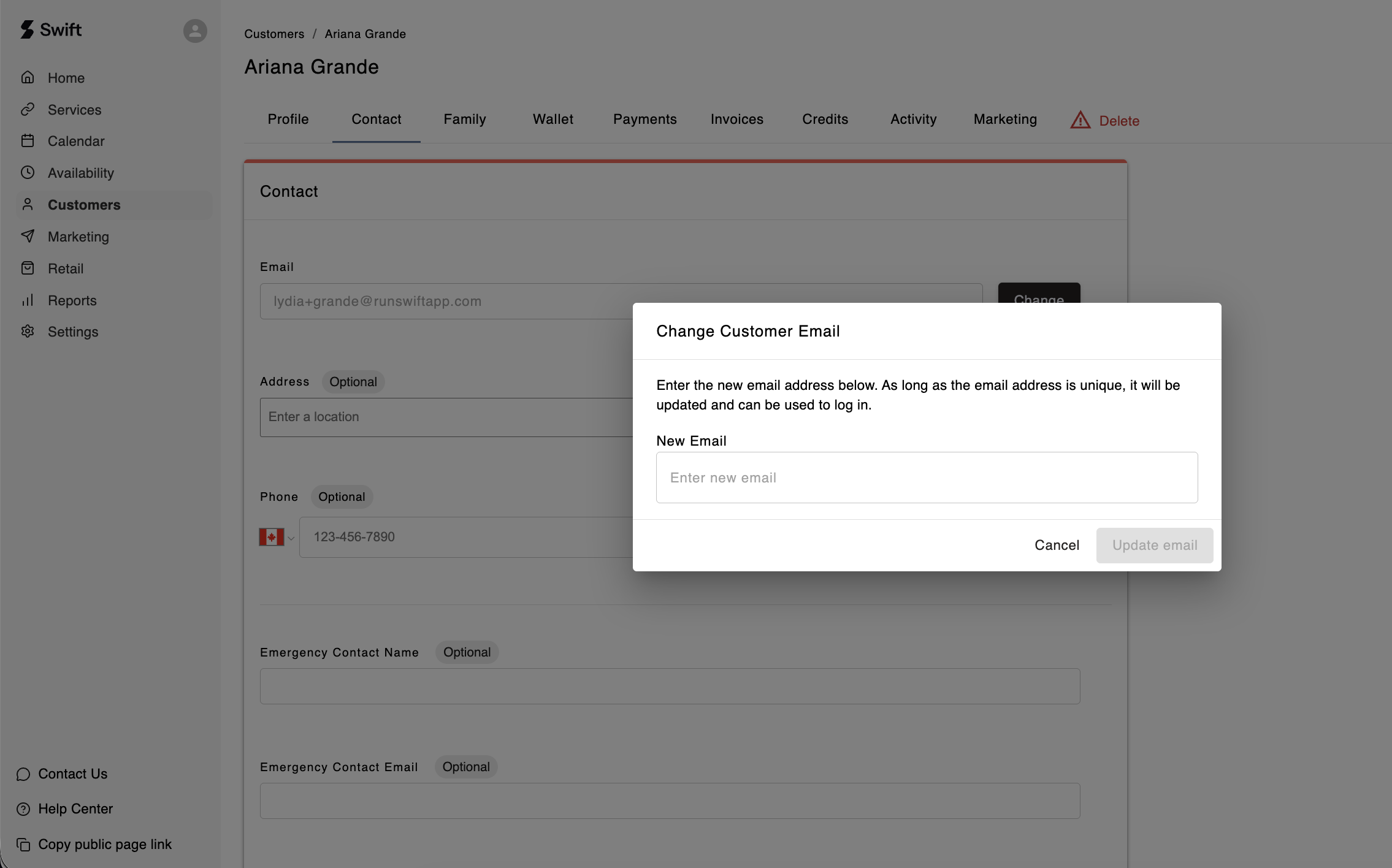 Once a customer's email address has been updated or changed, they will log into their Swift account using the new email address going forward.